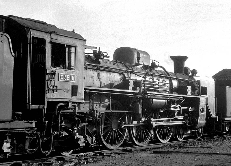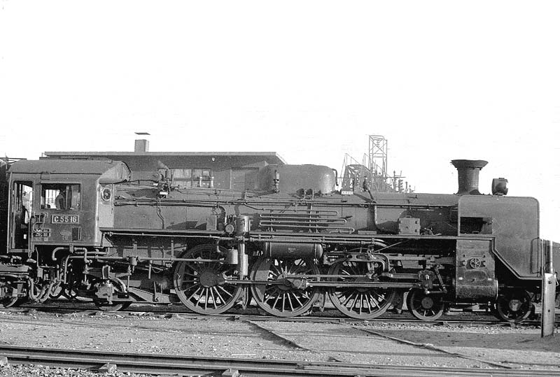 旭川機関区に所属していた頃のC5516を、様々な角度から撮影してみた。多分模型を制作するために撮ったのだろうが、怠慢にも32年後の現在に至るまで着手していない。 (1968.8苗穂機関区にて)