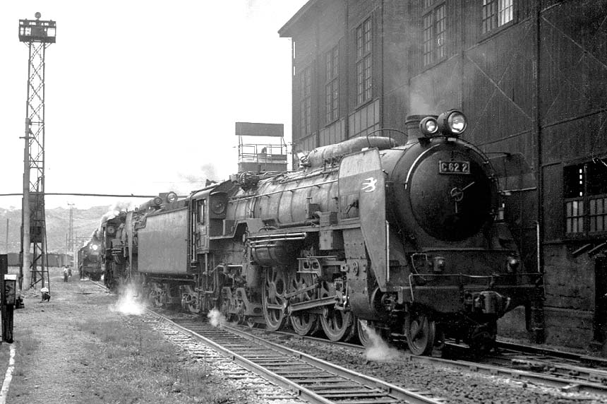C62 2号機が僚機を従え、「急行ていね」を率いるべく出陣しようとしている。当時の築港は大型SLの牙城であった。(1968.8/11)