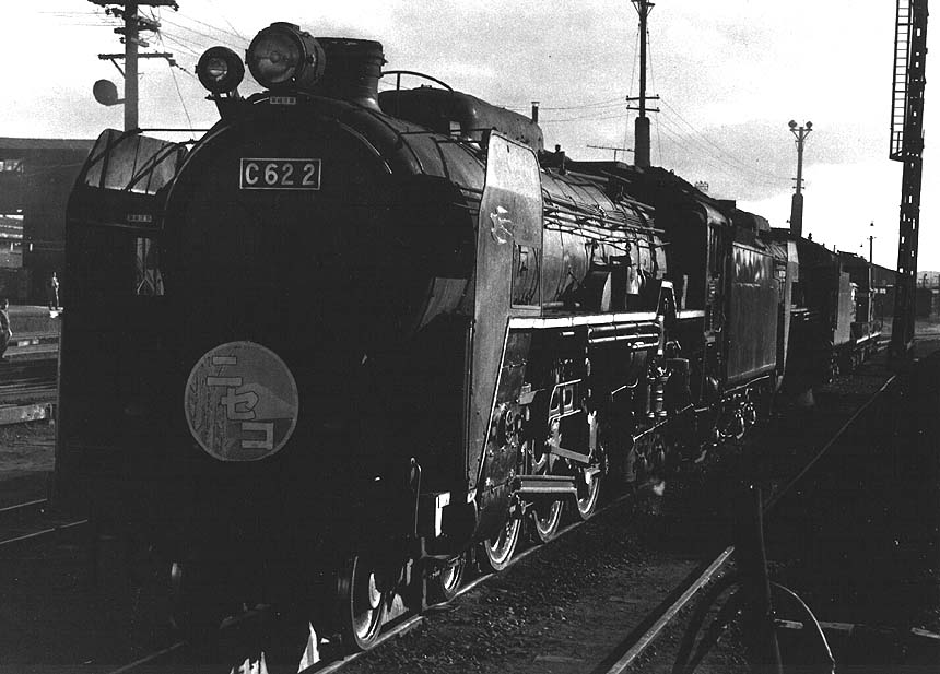 とうとうその日がやってきてしまった。1971(昭和46年)9月15日をもって、急行「ニセコ1号、3号」のC62運用が終了した。当日の先頭機はC62 2、次位がC62 3、上りニセコ1号104レの本務機がC62 15、下りニセコ3号103レがC62 16であった。 長万部機関区 1971(昭和46年)9月15日 次へ