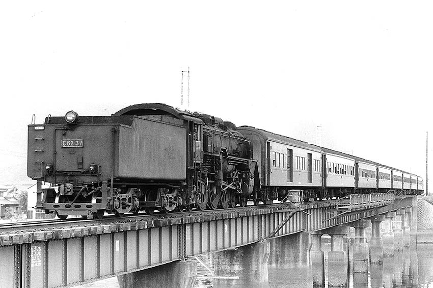 C62が背向で通勤列車を引く!! (広〜安芸阿賀) 広〜広島には朝晩に3往復の通勤列車が設定されていましたが、広駅に転車設備が無かったので 世にも珍しいC62の背向運転をみる事が出来ました。まるで中国前進型の背向運転の様です。 前へ 次へ 表紙へ(掲示板リンク)
