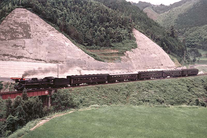 筑豊本線の筑前内野〜筑前山家間の冷水峠に挑むC55 46旅客列車。福岡へのショートカット篠栗線が開通した後は 桂川〜原田間は旅客の本数が激減した。現在では篠栗線と若松までの区間が電化され、完全にローカル線扱いである。 (1969/7/31) 前へ 次へ 最初のページに戻る