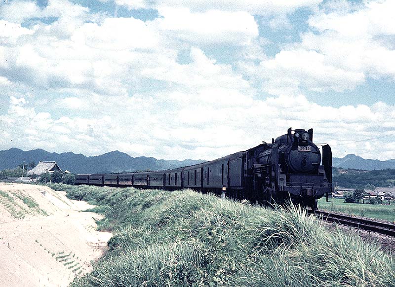 鹿児島本線、有佐駅付近を走るC60 16旅客列車。C6016は前年の東北本線電化によって盛岡から転属してきた。 煙突の脇に東北独特の小型デフレクタがそのままついていた。(1969/8/6) 前へ 次へ 最初のページに戻る