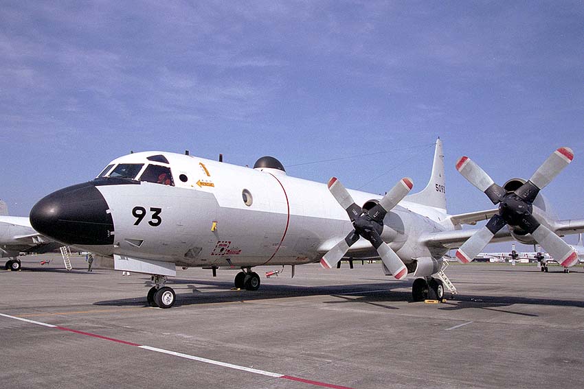 機体の上に衛星通信用のアンテナフェアリングを装備した93号機。最初、電子偵察用のEP-3と間違えてしまったが、