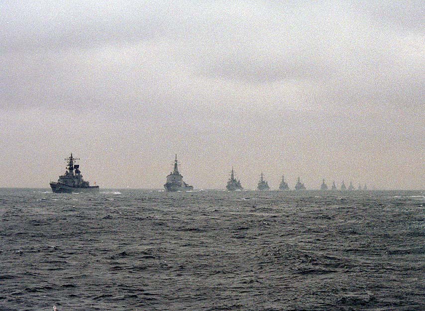 接近する受閲艦艇部隊 旗艦168たちかぜ イージス艦176ちょうかい 第一群101むらさめ以下 第二群144くらま以下