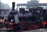 ナローゲージの機関車ー2 旧東ドイツのナローSL 1989年の東西ドイツ統合前、旧東ドイツ領にSLが主力のナローゲージ路線が沢山在りました。自動車交通が西ドイツほど発達していなかったからです。統合後、西から怒涛の様に流れ込んできたベンツとVWの前に一たまりも無く壊滅してしまいましたが、現在でもハルツ鉄道など7路線あまりが観光鉄道としてSLを走らせています。1998年の秋、ニュルンベルグ鉄道博物館を訪れたとき、役目を終えた彼女達が留置され復元を待つ姿を見かけました。 |
