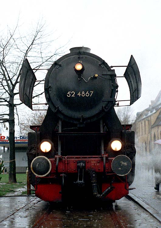 DR52 4867号機は1943年にマイバッハ社で製造され、1945年にオーストリア国鉄(OBB)に渡った。 1970年に用途廃止になったが 1980年にフランクフルト歴史鉄道が買い取って製造当時の姿に復元した。 前へ 次へ 「SLの部屋」に戻る