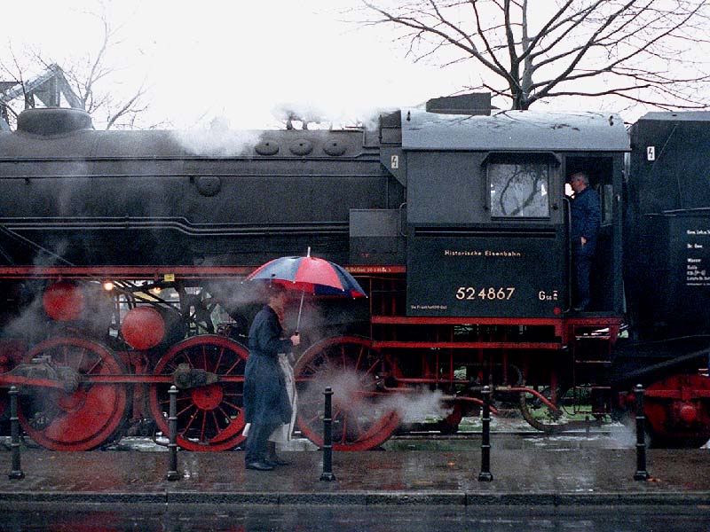 ドイツ鉄道は歴史と共に何度かスタイルを変えている。1920年までの9つの独立国鉄時代、1945年までのドイツ帝国鉄道時代、 1989年までの東西ドイツ国鉄時代、そして現在のドイツ鉄道会社時代である。 52 4867号機はドイツ帝国鉄道時代の姿に 復元されている。 前へ 次へ 「SLの部屋」に戻る