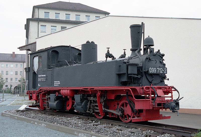 750mmナローゲージ99 712号機。形式99はナローゲージのSLを表すが、実に様々な形の機関車が含まれている。 99 712は二組のシリンダーを向かい合わせに備える変わった構造の機関車で、メイヤー式と呼ばれている。 前へ 次へ 「SLの部屋」に戻る