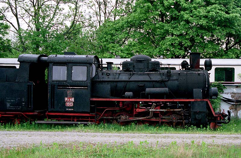 ドイツ鉄道と接続の反対側オクセンハウゼン駅に機関区があり、そこに保存機関車が集められている。 1994年の5月、なぜか1913号機とオーストリアから購入した客車が数両、Warthausen駅に放置されていた。 前へ 次へ 「SLの部屋」に戻る