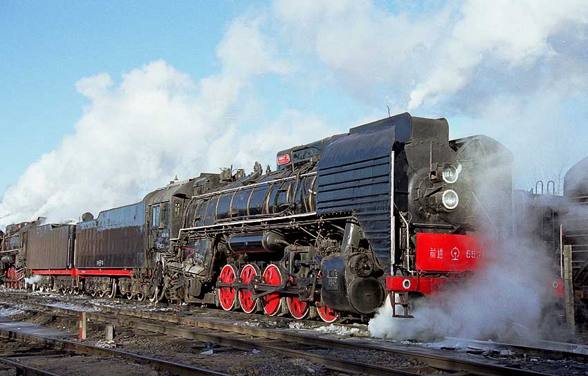 こちらはボイラーにきりりと金帯を締めた6631号機。まるで保存機のようにピカピカに磨かれていました。
