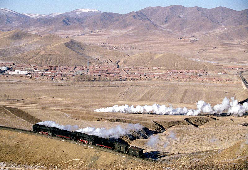 坂を駆け下りてきました。57001レはポイントEあたりで22844レと同方向に並びました。
