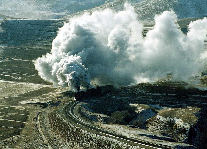 吹き上げる二条の煙がまるで塊のようです。ここから列車は折り返して北に進んでいきます。