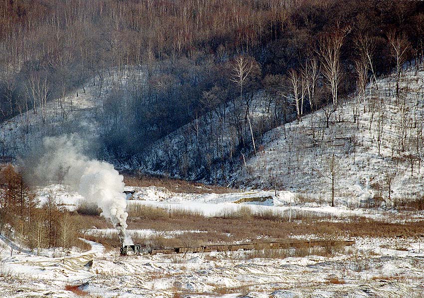 紅光炭鉱から石炭を満載した列車が上がって来ました。紅光から立新に向かって登り勾配が続きます。