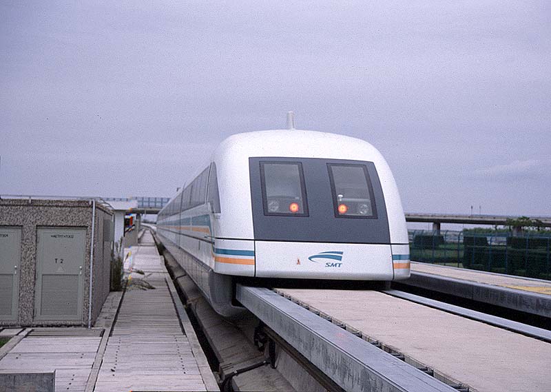火車とナベトロが現役な工場から僅か50kmのところに、21世紀がありました。 中国鉄道が誇るリニアトレイン、上海新空港と市内を最高時速400kmで結ぶ 超近代的鉄道です。10月に訪れたときはまだ試験走行中でした。 上海空港駅の通用門を無断でくぐりぬけ、 無人のホームに浸入するとたちまち係員に捕まってしまいました。 無茶苦茶怒られると観念していたら、 暗い駅内よりこっちの方が良い写真が撮れると 明るい構内に連れて行ってくれました。そのときのショットがこれです。 社会主義中国は「何でも秘密の国」と思い込んでいたので、実に新鮮な衝撃でした。 これが現代中国の自信の現われなのかあっ!!と、感じ入りました。 上海新空港を発車したリニアトレインは、音も無く通過し、みるみるうちに速度を上げて 上海市内に向かって走り去っていきました。 完了 |