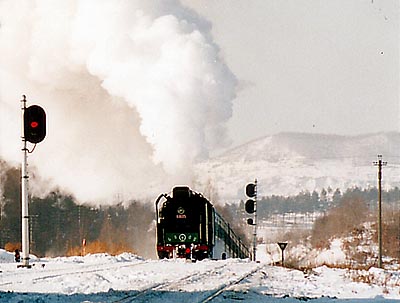 | 東側からサミット秀頂山駅に登ってくる石炭列車 | 西側から登ってくる83次列車 |