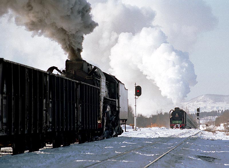やがて下り83次列車が煙を吹き上げて接近した。牽引機は緑番号の6805号機だった。