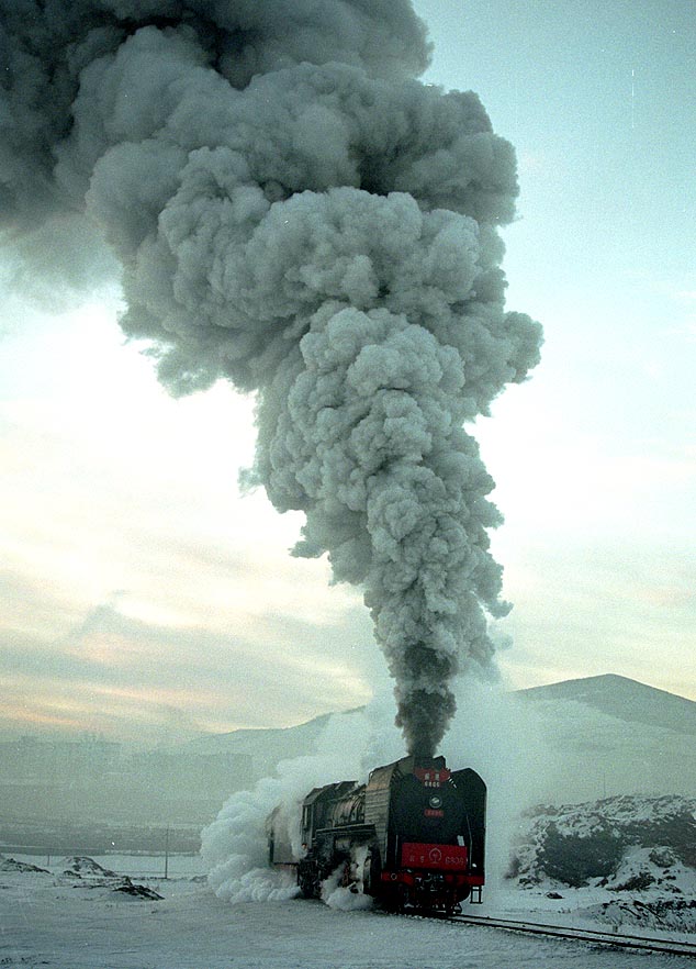 6:45、まだ朝日が昇らない早暁にドラフト音が轟いた。東井を発車した71次列車が激しく 空転を繰り返しながら重々しく目の前を通過していく。 2002/1/25 福山支線 東井駅