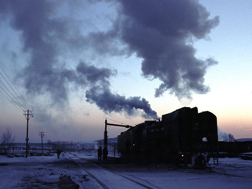 30分停車。84次列車を牽いてきた前進型が客車から開放されて給水を受けた。夕空に悠然とスチームが漂った。