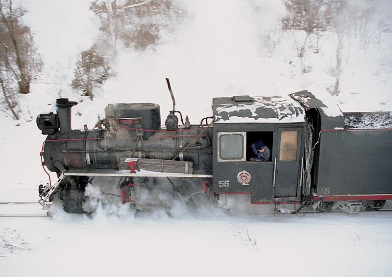 やや上方から捉えた55号機。ボイラー上部のデティールが判る。長い排気管をつけた