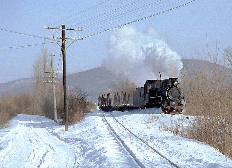 手前の線路が材木積み出し場へ伸びる分岐線だった。34号機は空車を率いて更に奥地へ登っていった。 最後の一本の丸太を運び終えたとき、森林鉄道は役目を終えました。春になるとレールの撤去が 始まり、何年も経たないうちに軌道跡は草に埋もれるのでしょう。そして、林の中の村も人もやがて・・。 次へ 前へ 葦河表紙(掲示板リンク)