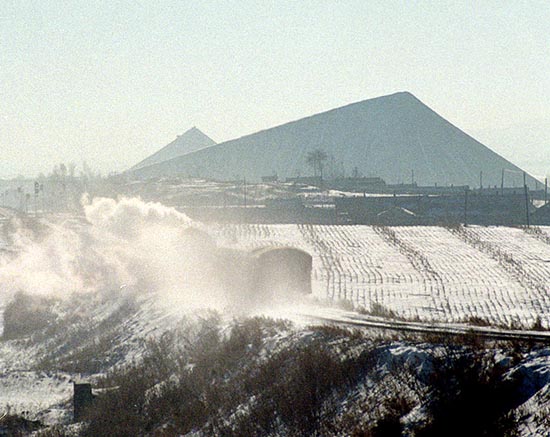 | RM209号の記事に拠れば、鉄道の正式名称は「双鴨山鉱務局運輸部」。 かつて日本にも在った炭鉱専用鉄道と思って良い。しかし流石に規模は大きく、 70kmを 超える本線の他に多数の支線が分岐している。 沿線には大小の炭鉱が無数に在り、三角形のボタ山や、積み上げられ始めたボタ丘(?)までも観ることが出来た。ここは全列車がSL牽引という夢のような路線で あったが、惜しくも2002年3月に東風型DLが入線し、無煙化が完了した。 (2002.1.24〜26訪問) |