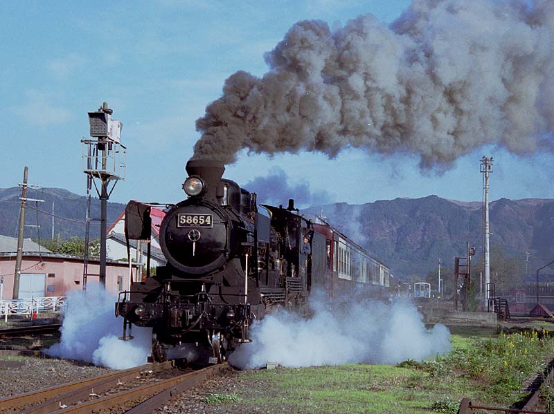 宮地駅を発車する上り阿蘇Boy。宮地からの乗客は少なかったが、阿蘇駅から7割方の席がうまったようだ。昔の素直なアングルで撮って見たくなり、50mm相当でねらった。同業者は子供を連れたお母さんのみ。(宮地駅2000/11/18) 次へ