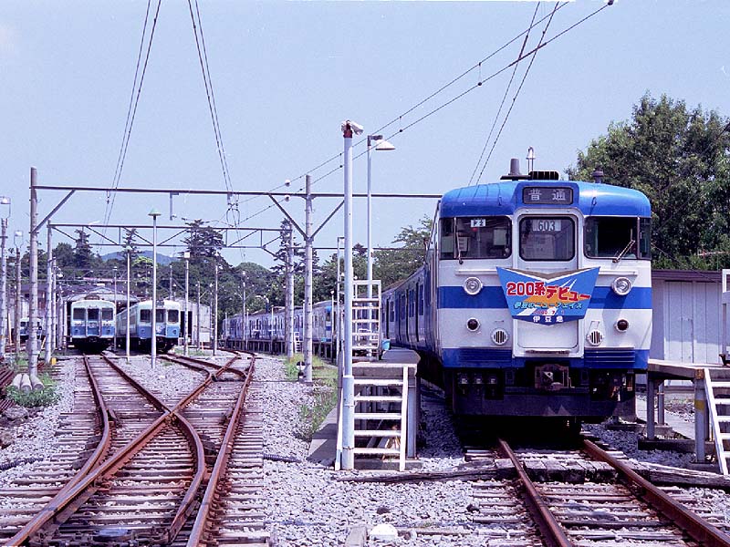 この夏から登場した200系。JR115系の4両編成2本を取り合えず購入した。塗装とシートを張り替えたほかは大きな改造は無い。 115系はJRより引退しつつあるが、エアコンがまだしっかりしているので購入を決めたそうだ。 伊豆急へ戻る