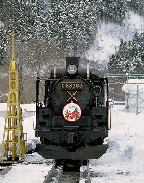 水上でしばしの休息を取るC58363。HMの赤、緑、白の配色がおめでたく、正月らしくて良い。