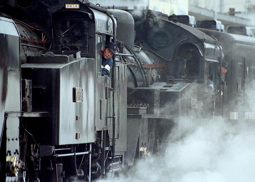 さあ、出発時間が迫っている。ホーム入線作業を開始!!(下館駅 2001.11.3)