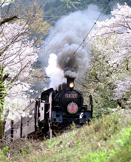 大和田駅を発車するC11227「さくら」。ヘッドマークはJRが保有する本物だと知った。 昔、果たす事の出来なかった佐世保のC11「さくら」に30年ぶりで巡り会うことが出来た。 前へ 次へ 今月のRWに戻る