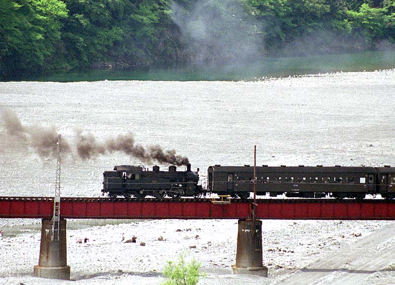 名所大井川第一橋梁をわたる101レ。 このときは何とC10 8が後部補機につき、SLの前引き後押しであった。