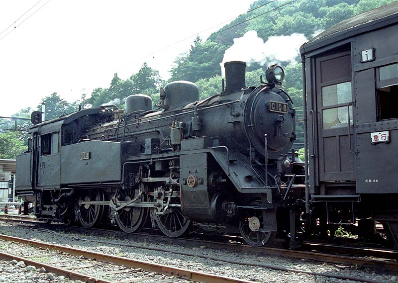 三重連の主役を務めたのはC10 8号機だった。下り101レはC108+C11227+C12164+客の正向き三重連、上り102レは プッシュプル変則三重連だった。(千頭駅:7/14) 前へ 次へ RWに戻る
