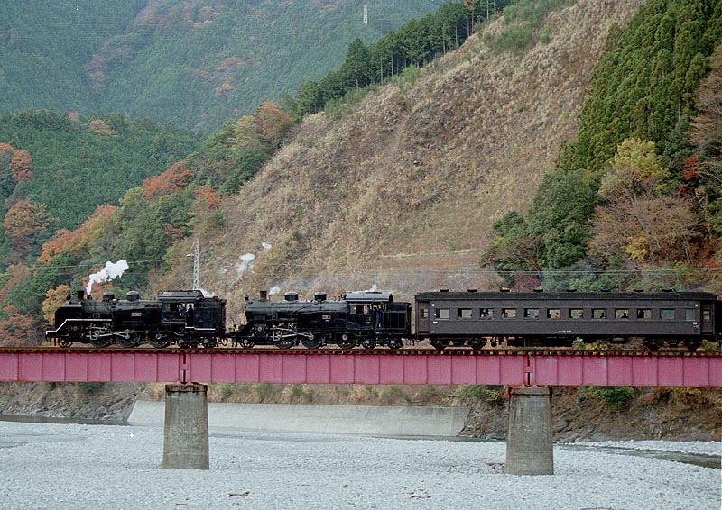 その5.上りの本命、前向き重連の102レ。第4橋梁。午後になると何故か曇ってしまい、102レは日陰の中での 撮影だった。特別運転だったのでサービスを期待したが、通常運転どおりは橋にかかる手前で絶気してしまった。 次へ 前へ 今月のRWに戻る