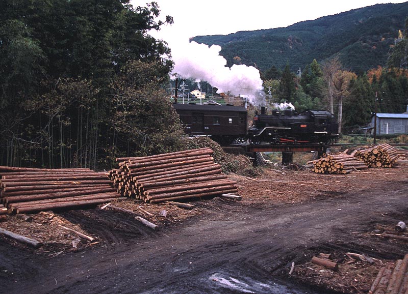 貯木場と小さな橋を配して、森林鉄道の雰囲気を出したかった。
