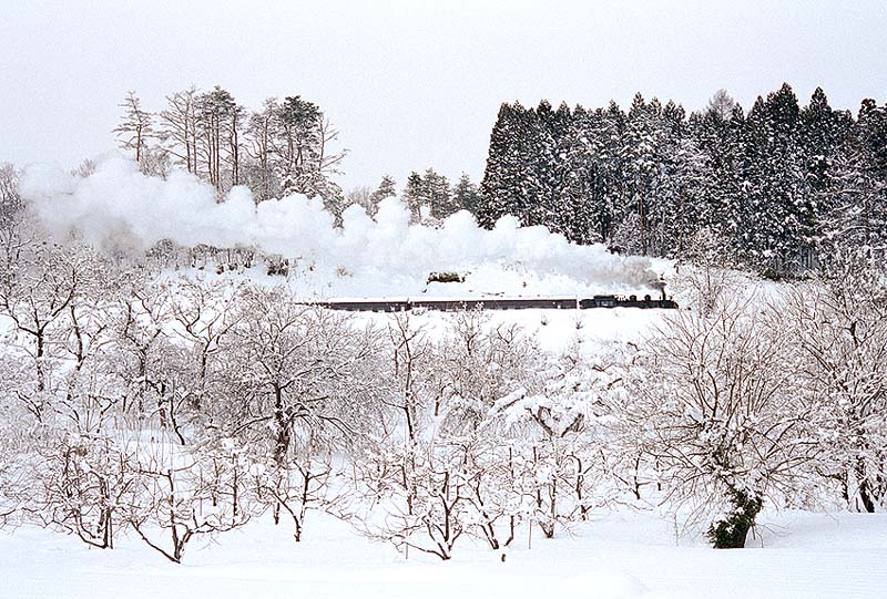 ドラフト音が近づいてきました。会津坂下を発った列車が急勾配に挑み、築堤をよじ登ります。