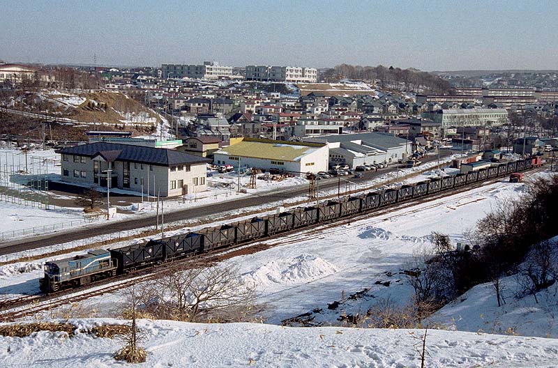 春採駅で待機する石炭列車。大型のセキ十数両の両端にそれぞれDLがついたプッシュプル編成であった。 この日は何と坑内火災事故の為に作業中止であったので、石炭列車も運休していた。 北海道新聞によると、幸い事故で怪我人は無かったそうだ。(2001.02.20) 前へ 次へ 「今月」目次へ戻る