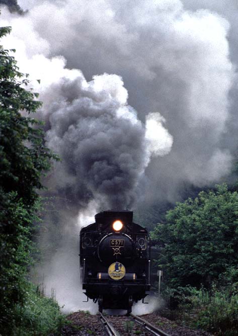 曇天のローキーな色彩のなか爆煙を高らかに吹き上げて峠を上ってくる。定番ではあるが真正面に近いアングルが採れた。 6月のSLとしては悪くは無い。重連であるということを除けばだが。仁保の貯水池付近にて。 次へ 前へ 目次へ戻る