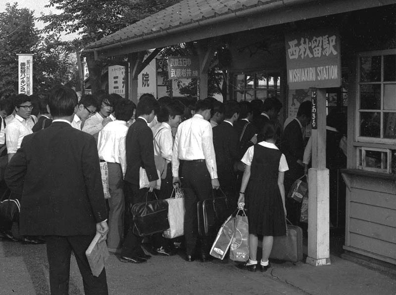 帰省する秋川校生でごった返す西秋留駅。当時は木造のいかにもローカルな駅舎であった。 駅前に小さな食堂と本屋があり、高校までの道の両側は一面の桑畑だった。 (西秋留駅 1971.5) 次へ 前へ 目次へ(掲示板リンク)