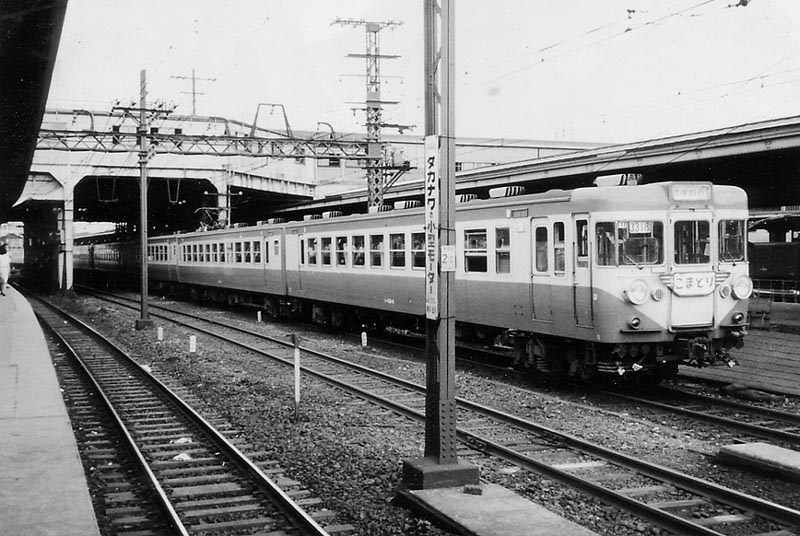 高貴な精神の産物だったのだろうか。後の167系は部分低屋根、空気バネ仕様で堕落してしまった。(秋葉原駅 昭和40年頃)